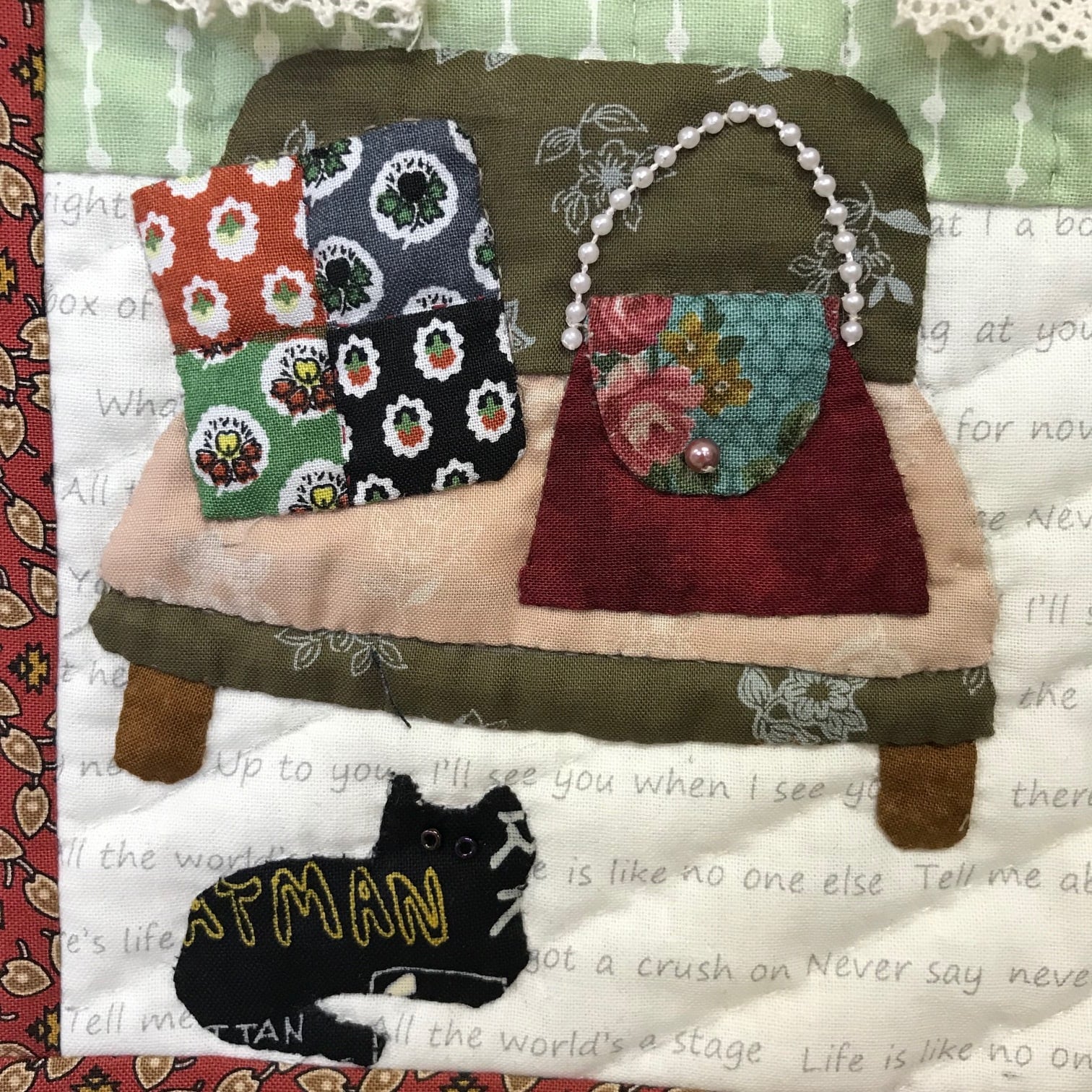 手作りが大好きな女の子のアトリエをイメージしたタペストリーです。バッグや洋服、ミシンなどを楽しみながらアップリケできます。