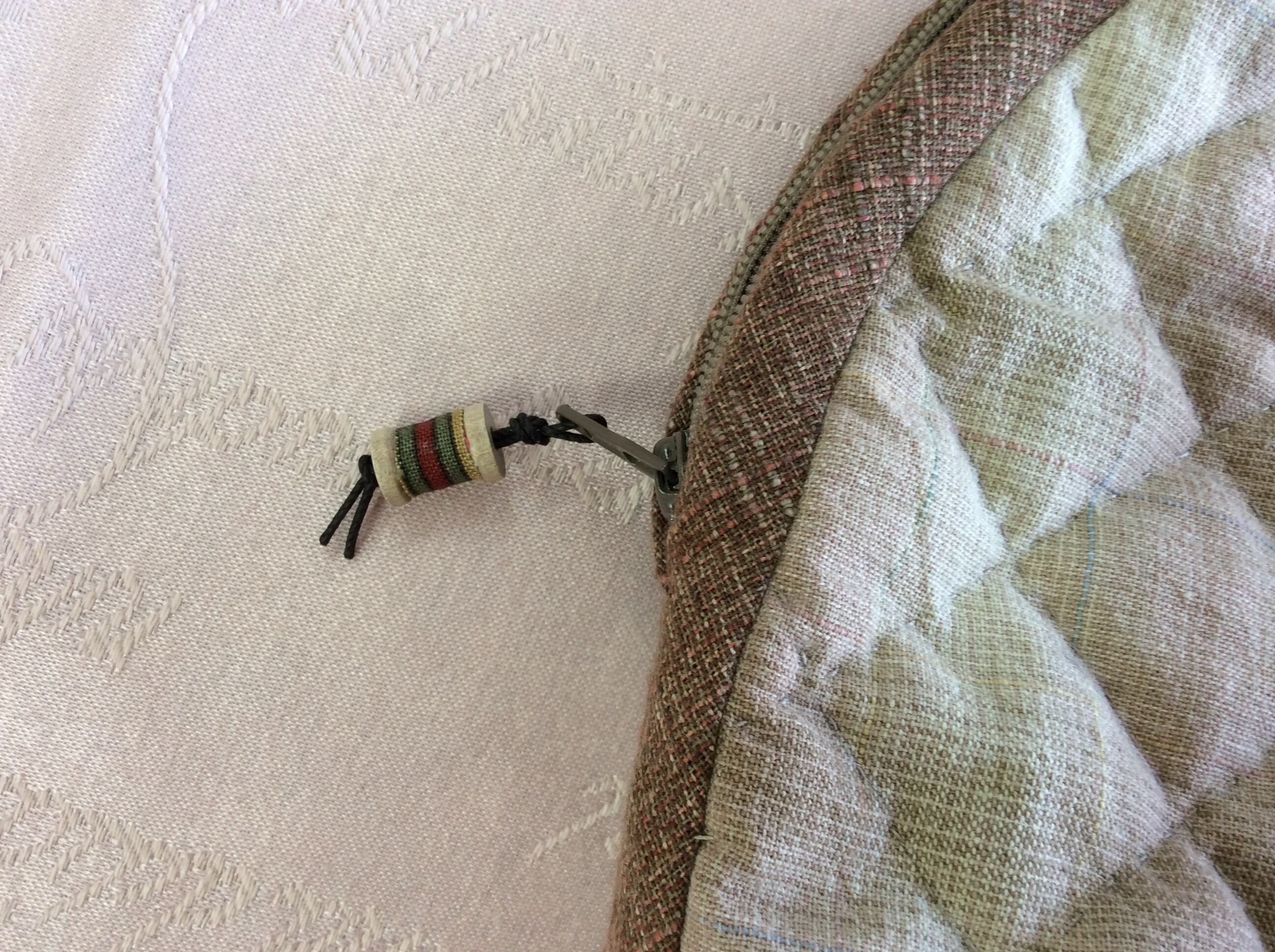 ●キット内容:表布、山道テープ、包みボタン、ファスナー、飾り用スプール、ひも、作り方説明書