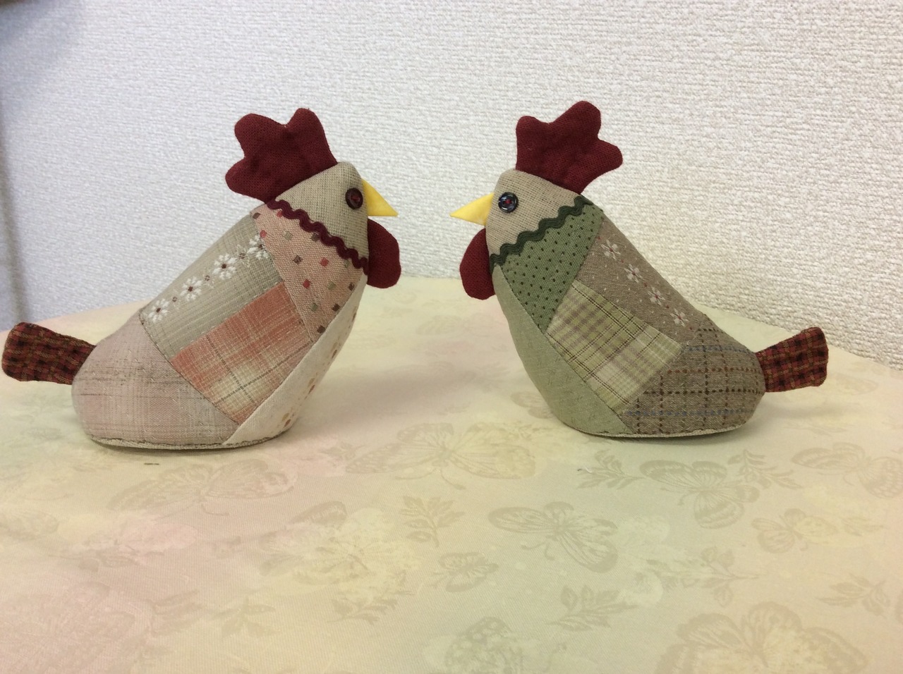 羽部分はヘキサゴンのピースワークで。飾る季節や場所を選ばない、落ち着いた可愛らしさがあります。